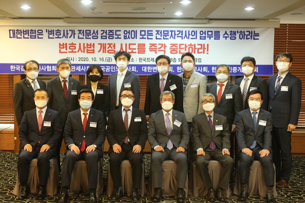 President of the KACPTA, held a meeting with heads of six professional qualification organizations at the Korea Press Centre on October 16 and strongly condemned the Korean Bar Association's attempt to revise the attoney law act to "perform all professional qualifiers without professional verification."