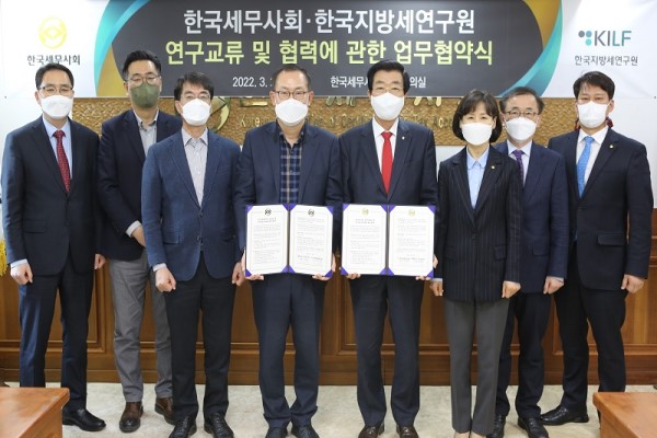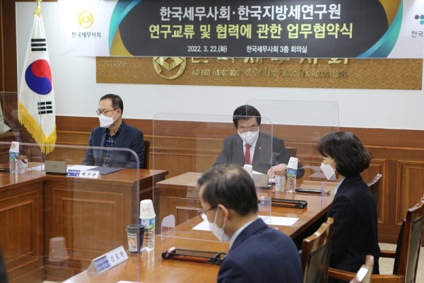 At 3:30 p.m. on March 22, the KACPTA signed a business agreement with the Korea Institute of Local Finance (President Bae Jin-hwan), a leading local tax research institute in Korea, to establish mutual cooperation to suggest rational management measures for local taxes. The signing ceremony was attended by President Won Kyung-hee, Vice president Ko Eun-kyung, Vice president Kim Hyo-hwan, Director of research Kim Shin-eon, President Bae Jin-hwan and Vice president Ha Neung-sik of the KILF, Kim Pil-hun, and Park Sang-soo.