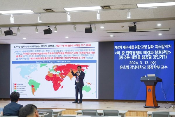 The fourth session of the Pascal Lecture, a humanities lecture planned by the KACPTA (President Koo Jae Yi), was held on the 13th in the auditorium on the 6th floor of the KACPTA Hall. The fourth lecture of the Pascal Lecture held on this day was 'Professor Ho-rim Yoo of Kangnam University's Department of Political Science and Economics, who introduced the conflict between countries that are sharply opposed to the topic of the background and future prospects of the strategic war between the United States and China (Will China invade Taiwan?).