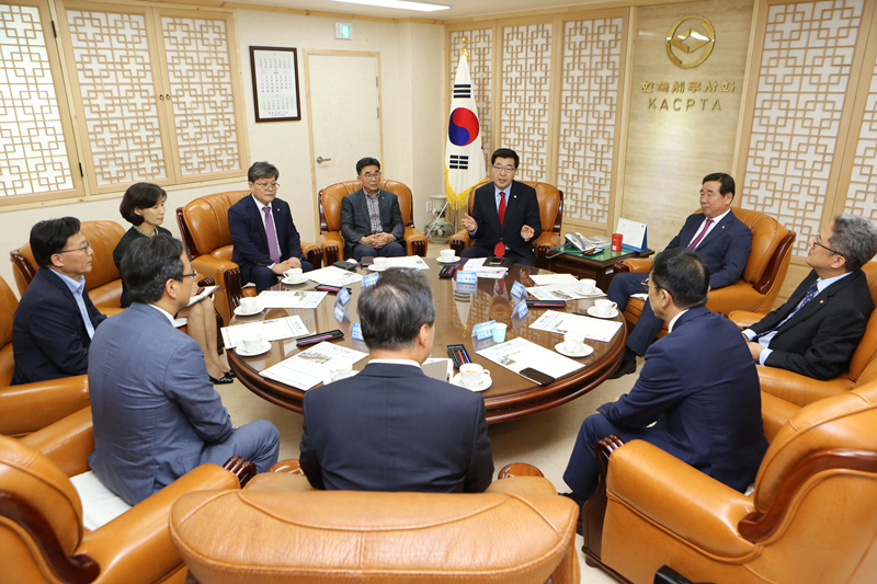 On the 17th of July, President Won Kyeong Hei of the KACPTA had a time to listen to the current issues and suggestions of each district and share opinions with the presidents from seven regional CPTA associations at the KACPTA Hall. In the photos, president Won Kyeong Hei and vice president Jang Un Gil and Ko Eun kyung are taking a commemorative photos after having a meeting with seven regional CPTA associations leaders. |